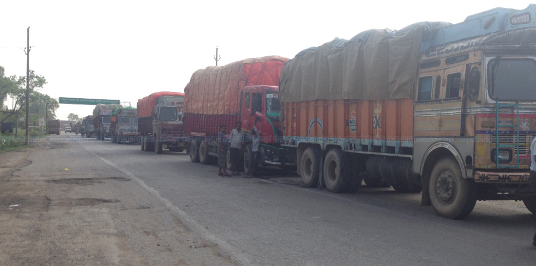 भैरहवा नाकाहुँदै मुलुकमा भित्रिने मालवाहक गाडी भारतीय सीमामा रोकिए
