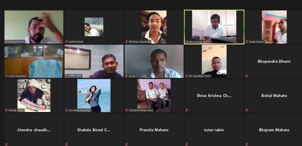 थारु पत्रकार संघले आयोजना गरिएको तीनदिने निशुल्क आधारभूत पत्रकारिता तालिम मंगलबार सकिएकोछ । अनलाईन भर्चुअल माध्यमवाट आयोजना गरिएको तालिमको अन्तिम दिन फिल्ड रिपोटीङको बारेमा पत्रकार ठाकुरसिंह थारु र आचार संहिताको विषयमा फोनिजका केन्द्रीय अध्यक्ष डण्ड गुरुङले सहजीकरण गरेका थिए । जारी लक डाउनको समय सदुपयोग गर्न तालिम आयोजना गरिएको हो ।