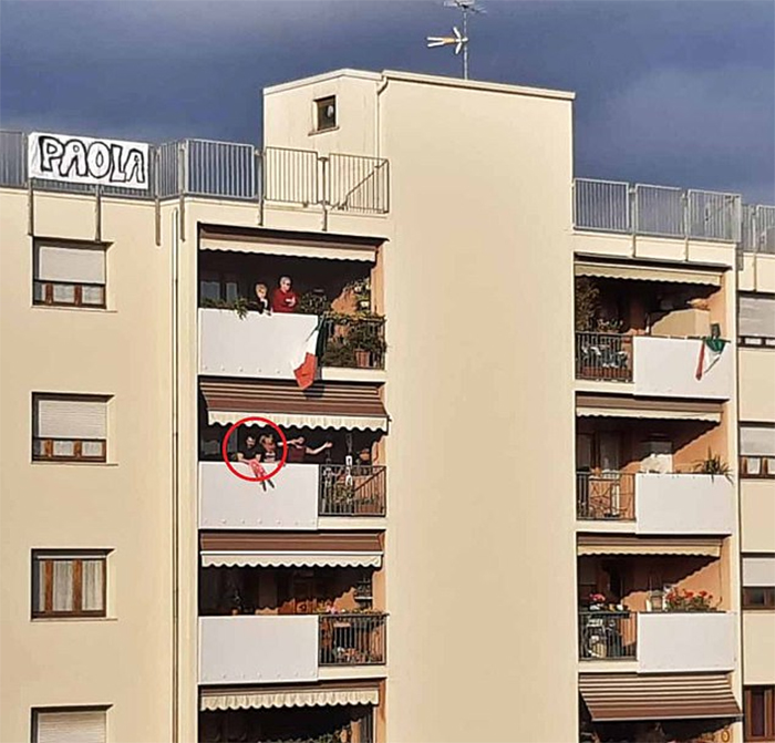 मिसेल डी अल्फासो बस्ने घरको ठीकअगाडि बस्छिन्- पावला एन्जेली। लकडाउन र सामाजिक दूरीको यो समयमा यी दुईबीच पहिलो हेराहेरमै प्रेम भएको छ। उनीहरु साँझका बेला आआफ्ना घरको बरन्डामा बसेर संगीतको आनन्द लिन्थे। इटलीका कतिपय सहरमा दैनिक साँझ ६ बजे मानिस घरको बरन्डा वा छतमा गएर संगीत बजाउने/सुन्ने गर्छन्। कोरोना महामारीको यो बेला त्यस्ता संगीतले एकताको सन्देश दिन्छन्।