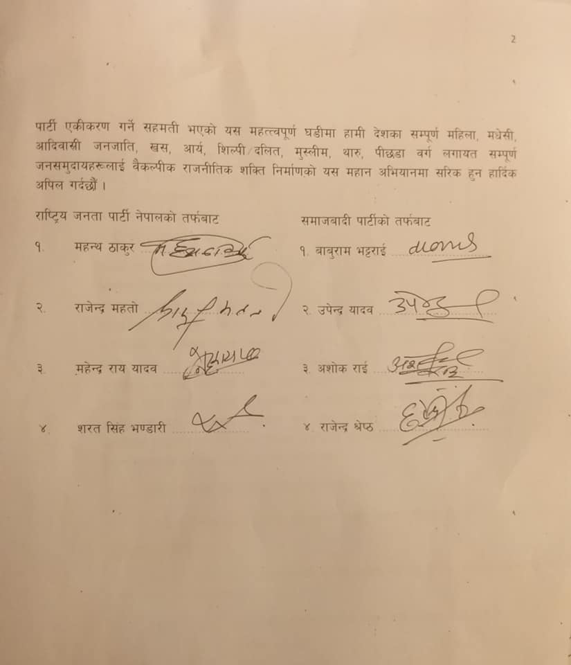 लामोसमयदेखि एकीकरण प्रक्रियामा रहेको राजपा र समाजवादीबीच बुधबार राति सहमति भएको छ।