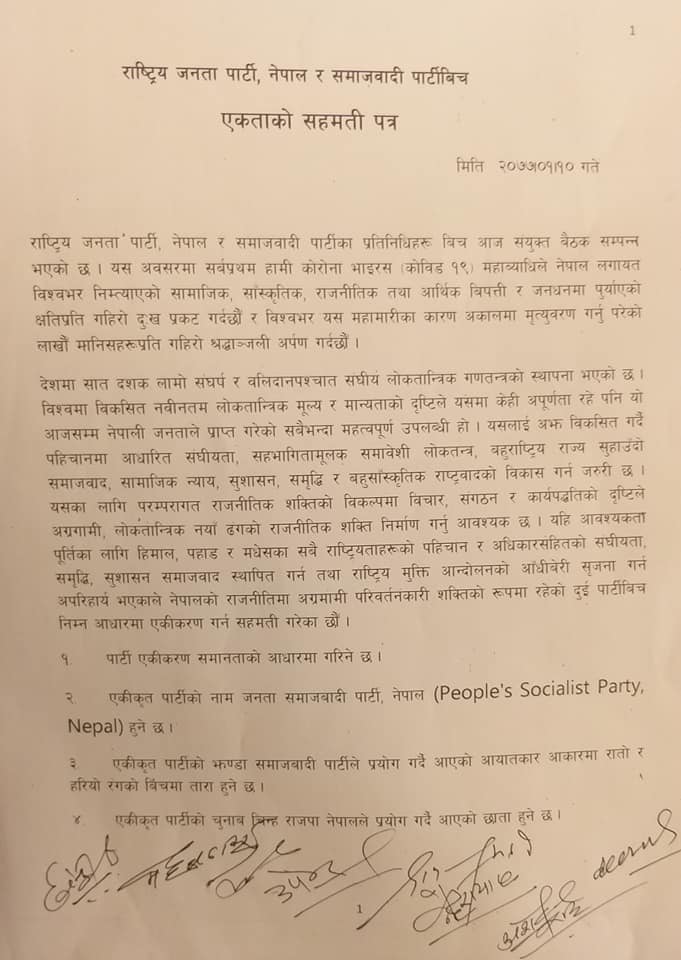 राजपा र समाजवादी मिलेर बन्यो ‘जनता समाजवादी पार्टी’